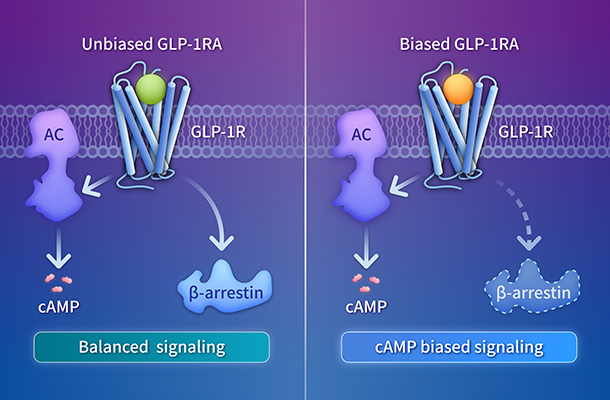 BiasVantage? 偏向型激動劑發現平臺利用基于結構的合理設計及全面的信號傳導分析,打造療效增強、脫敏程度降低的精準療法。該平臺開發信號選擇性配體,通過降低脫敏程度延長受體活性,從而比非偏向型方法獲得更佳的治療效果。